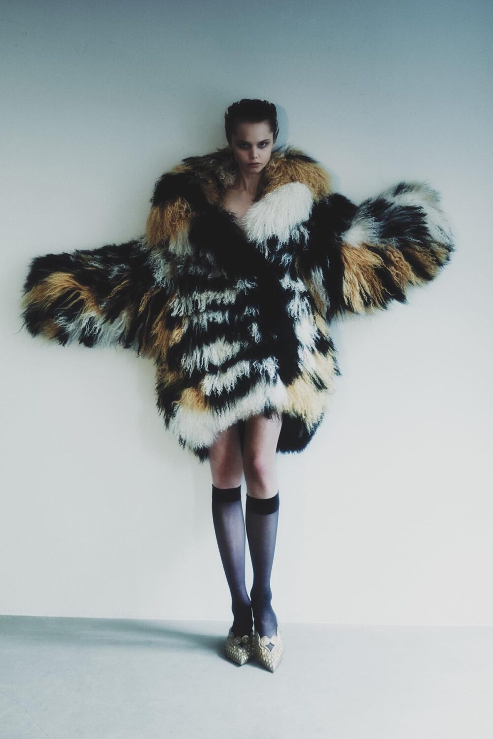 Satin White Angora x Curly Goat Cropped Jacket